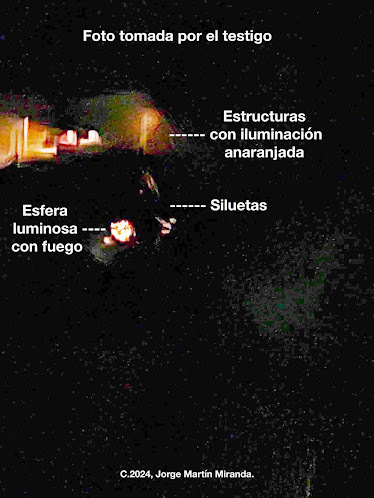 What he saw disturbed him, because in that area there were no houses or any structures, only dense forest, but nevertheless, he saw that in that place there were several strange structures and below them there was what appeared to be a large ball of light or a circular hole from which bright lights or flames came out. There were also what appeared to be some diffuse figures.