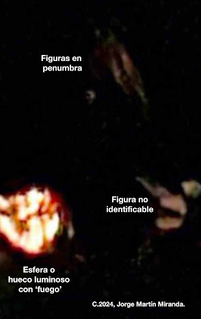 Also, to the right of the circle with fire, in a slightly higher position, some strange silhouettes could be seen that were a little in shadow. Perhaps they could be mere reflections of the luminous circle and due to a pareidolia effect we saw them as figures, and so we decided to examine them in more detail.