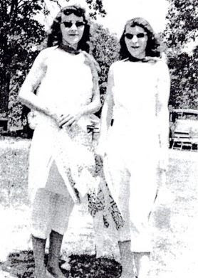 From Keller Venus Files: Sometime before the end of 1959, the Mitchell Sisters of Florissant, Missouri, Helen (L) and Betty (R), were translated to the planet Mars to be with their extraterrestrial boyfriends, Elan of Venus and Velas of Mars, respectively. Looking spiffy in their white pantaloons and light blouses, and sporting shades that gave them that cool Hollywood look, they returned to Earth in 1964 to do some grocery shopping at a Kroger’s supermarket in Florissant, where they were spotted by a couple from a St. Louis, Missouri, UFO club, with the wife being the one who snapped this picture of the enigmatic sisters. Should anyone have seen these angels lately, don’t hesitate to contact Cosmic Ray at rkeller1@mix.wvu.edu or your editor, Lon Strickler, through this website.