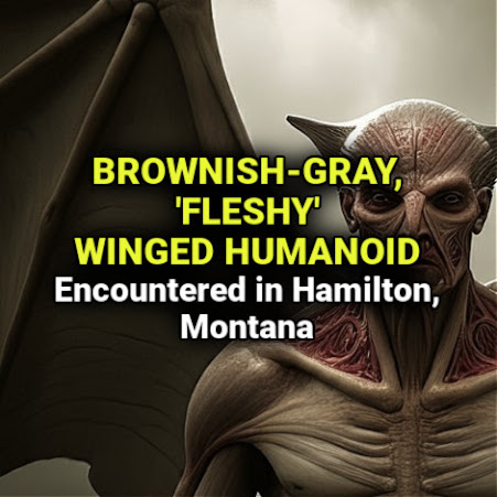 BROWNISH-GRAY, 'FLESHY' WINGED HUMANOID Encountered in Hamilton, Montana
