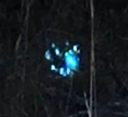 I read your blog daily. The attached photos are from my best friend. On a weekend back in October 2016, she went to the Headwaters Outdoor School in the Mount Shasta area with friends. The First Nations people in that area call this area a vortex or portal. She enjoyed her weekend and took some photos of the area. I guess what she captured in these photos might be called a "Will o' the Wisp." So in the first shot of the sun in the pines, there is a small blue orb at the base of the tree. When blown up, look at these little things. What the heck are they?
