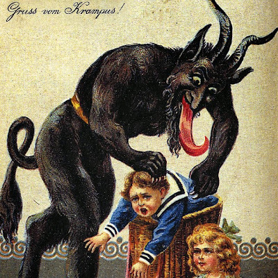 Oh, you better watch out! The young in Austria, Germany & Switzerland have known these words very well. It is a warning, and they tremble at the mere mention of Krampus, a malevolent and devilish creature, complete with large horns and hoofed feet. Whereas the Western version of Santa Claus is in charge of both rewards and punishments for good and bad children respectively, the Alpine Saint Nicolas only distributes rewards while Krampus delivers the punishments.