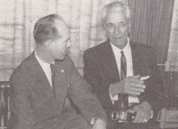 From Keller Venus Files: Danish Air Force Major Hans C. Petersen (L) with Professor George Adamski of Southern California (R) at the Scandinavian UFO Information Congress (SUFOI) in Fredericia, Denmark, 5 May 1963.