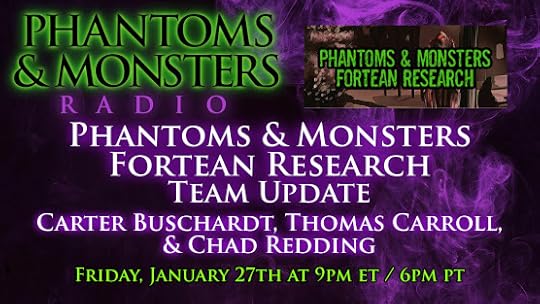 In this episode of Phantoms & Monsters Radio, we welcome Phantoms & Monsters Fortean Research investigators & researchers Carter Buschardt, Thomas Carroll, & Chad Redding for a team update discussion. Please like, subscribe, and comment.