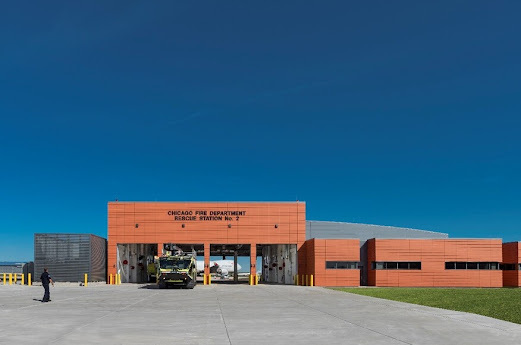 Chicago City Firemen posted at O'Hare Fire Station #2 come forward to describe a sighting of a screeching & chirping orange-eyed winged humanoid flying over the location.
