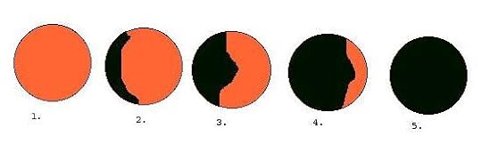 At that time I had a crude drawing program and I used it to make an illustration of the colour change I saw. Read it from left to right, 1 to 5. The change took about half a second. I have never read any accounts of such a colour change done in such a manner and I have no theory to explain it." JBS