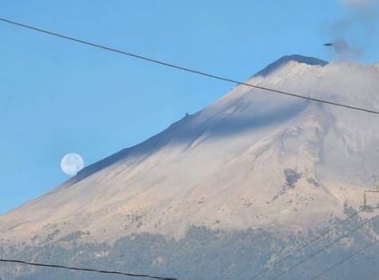 She captioned the image "Today's photo at 7:52 am. Popocatépetl, the moon and possibly a UFO…"