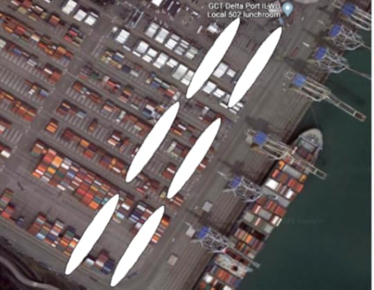 "I captured satellite views of the Tsawwassen coal dock and container area and used my primitive drawing program to superimpose an approximation of what I saw.