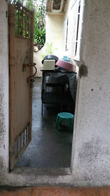 Around 6 PM, she and her cousin cleaned and trimmed the excess leaves and branches along the path to their laundry area. At 9 PM, a thunderstorm occurred and she ran outside to make sure the front gate was locked and that there was no laundry on the line. As she was heading to the front gate, she glanced over at the laundry area to check it and that's when she saw him.