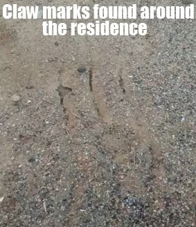 The family had experienced loud clawing sounds and indiscernible growls outside their home. The daughter has also endured clawing outside her bedroom window as well as unexplained activity within the home. She woke to claw marks on her back and noticed items moved in her bedroom. There have been several attempts to confront this being but in each instance, it has eluded the efforts.