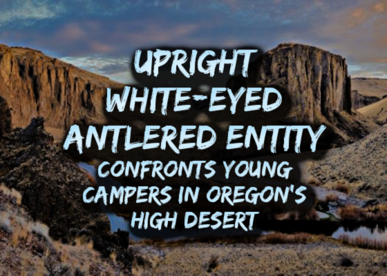 Upright 'White-Eyed Antlered Entity' Confronts Young Campers in Oregon's High Desert