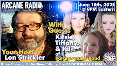 PODCAST - Lon Strickler's ARCANE RADIO - Kitsie Duncan, KJ McGlinn & Tiffany Rice - PARANORMAL X ROAD - Supernatural Investigators