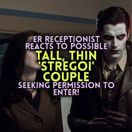 A rural Iowa hospital receptionist encounters a bizarre couple who seem like they need her permission to enter the ER. Were these actual Stregoi/Vampires?