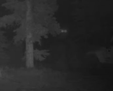 "Hi, Lon. In July 2011, my wife and I were spending a weekend at a friend's cabin, about 15 kilometers north of Manitou Falls, Ontario, Canada. We were both sitting on the porch looking into the woods. Two spotlights were shining off the porch, so the woods and the open area in front of the cabin were well-lit. I had spent a lot of time in this general area as a boy, and I was aware of the wildlife there.