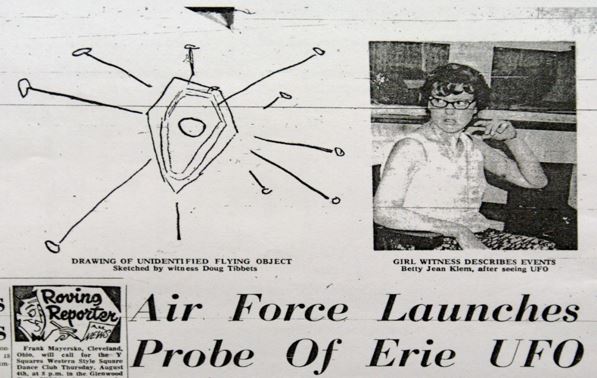 The story begins on the evening of Sunday, 31 July 1966, when Betty Jean Klem, 26, of Jamestown, New York, said that she and three friends were sitting in their disabled car on the beach in the Presque Isle Peninsula. With their car broken down and nothing else to do, they were watching the sky when they saw what appeared to be a star moving in the sky in a contrary direction to the fixed stars.