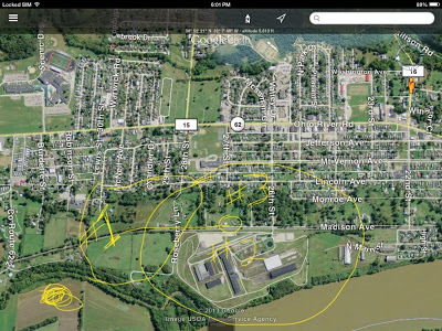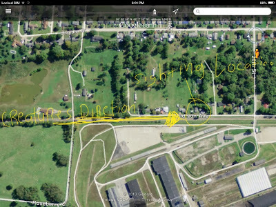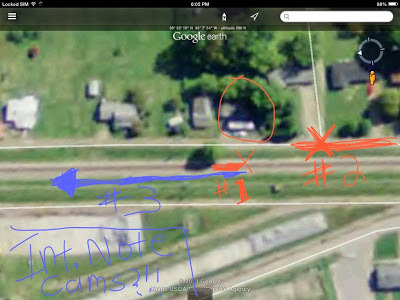 #2 - this is where her mother turned in, from 26th Street and was heading towards the home, when her car/approaching headlights made the creature retreat. The blue line, in reverse, is the way the creature left. I think her mother did not see it, possibly because of the tree beside the tracks. I'm pretty sure you think as I, regardless of anything else, these things are smart. Possibly every bit as intelligent as Bigfoot/Sasquatch. I think this is a very credible witness, and the experience has had a very critical impact on her thinking and viewing of the world.