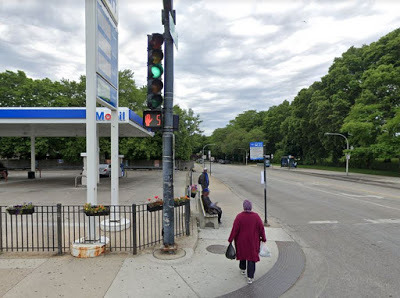 At approximately 4 PM CT, eyewitness 'JD' was getting off the metro bus at the intersection of S. Jeffery Blvd & E. 67th St. in Jackson Park Highlands in south Chicago (near the Mobile gas station). JD noticed an unusual flying being approximately 100-120 feet above him, adjacent to an apartment building in the vicinity.