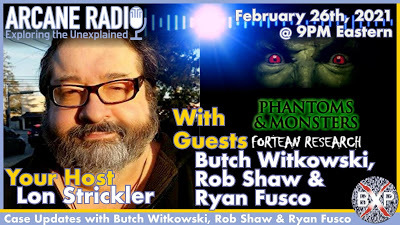 PODCAST - Lon Strickler's ARCANE RADIO - Phantoms and Monsters Fortean Research Team Updates | Fri. Feb.26.2021