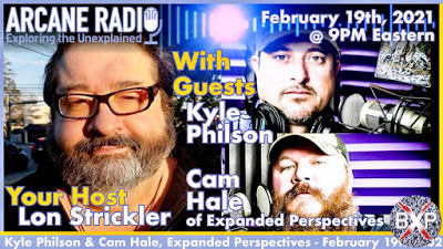Kyle Philson and Cam Hale EXPANDED PERSPECTIVES Paranormal | Arcane Radio Feb.19.2021 @9PM ESTJoin Lon Strickler as he welcomes Expanded Perspectives paranormal and supernatural podcasters Kyle Philson and Cam Hale to Arcane Radio on February 19th, 2021. Expanded Perspectives represents individuals inclined to form one’s own opinions rather than depend upon academics or authorities; especially about ancient cultures, conspiracy theories, science, cryptozoology, social and religious issues. Our open minded views allow us to consider all possibilities regardless of how strange or unusual. Come with us as we explore the many stories, studies and topics through podcasts, interviews, books, blogs and news/magazine articles. Kyle Philson is a native Texan. Growing up in rural Texas in a small town outside of the Dallas/Ft. Worth Metroplex, Kyle spent a lot of time in the woods hunting, fishing and camping. His early interest in the paranormal was first sparked by his father and uncles. Watching shows like Unsolved Mysteries and In Search Of along with reading numerous books by John Keel and Ivan T. Sanderson, Kyle became fascinated by UFOs, Bigfoot, time slips and parallel universes. Keeping an open mind and exploring these topics, he strives to present theses stories and experiences shared by only a few in a fun and light hearted way. Kyle currently lives in Texas with his wife and three sons. Cam Hale was born and raised in Texas and comes from a long family heritage of Texans that can be traced back to before the Lone Star State gained it’s independence. Growing up in a rural country town he spent the majority of his time outdoors. Receiving his first taste of archery at the age of 5, he started down a path that lead him on solo camping and hunting trips across the state as well as many other states. Like most his fascination with the strange and unusual started young with shows like In Search Of and Unsolved Mysteries. Diving deeper into these subjects at his the local library, only fueled the flames that have led him to where he is today. With an open mind and adventurers heart, Cam looks to present the stories of the strange in a fun and intriguing manner. For more information visit their website at - https://www.expandedperspectives.com