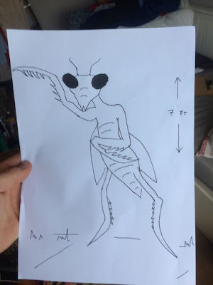 A British man says he fled from a seven-foot tall telepathic alien mantis. He told of how he fled while cycling home through a woodland in Warwickshire.