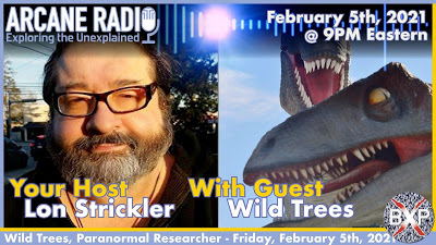 Wild Trees | Paranormal Phenomena and Experiences | Arcane Radio 9PM EST Feb.5.2021Join Lon as he welcomes "Wild Trees" a biologist and paranormal researcher to Arcane Radio on February 5th 2021 at 9PM Eastern. Wild Trees is a biologist who studies the paranormal. He has a degree in biology, has published research in a peer-reviewed journal, co-written a college science lab manual and has extensive field research experience in Texas, Colorado, Alaska, Montana, Wyoming, and Arkansas. He specializes in animal behavior, experimental design, and microbiology. Wild Trees can be found on YouTube, Facebook, and Instagram as Deep Wild Tech. And he is on a weekly live YouTube podcast at Black Lotus Productions.