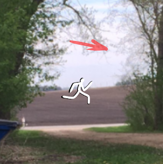 Eventually my dad joined up with us at the end of the driveway. We told him what we saw and he thought it might have been a plastic bag blowing in the wind. Except it wasn't windy at all, that's why we were playing badminton. But it's not uncommon to see garbage blowing across the farm fields out here.