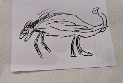 UPDATE: "It was definitely not a moose and I don't think it was an elk. It wasn't a cow or beefalo. For those wondering, it had no antlers - the head was distinctly canine. It was in the backwoods near Durham Chapel Hill Rd specifically. Below is my drawing and an image I found that closely resembles the creature." MX