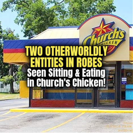 TWO OTHERWORLDLY ENTITIES IN ROBES Seen Sitting & Eating in Church's Chicken!