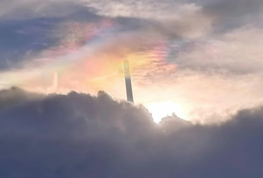 A curious pillar, or column, rising from rainbow-hued clouds enchanted the skies above Ubon Ratchathani, Thailand capturing the attention and imaginations of residents alike.