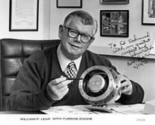 William P. Lear (26 June 1902-14 May 1978), points out key features in revolutionary turbine engine for jet fighter craft.