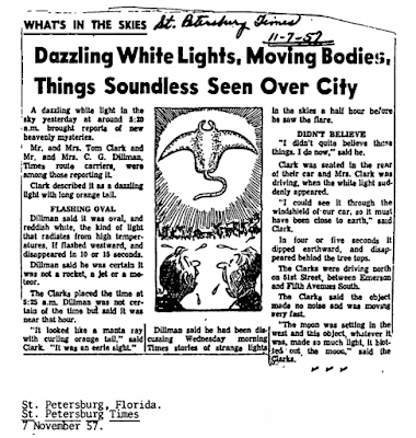 Flying Reddish-White 'Manta Ray' Seen Over St. Petersburg, Florida 1957