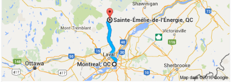 Joliette (pop. 20,000 today) is located about 50 kms (31 mi) north east of Montreal. M. Alderie Charland appears in the 1892 and 1893 church interment records of Saint Paul's Cathedral in Joliette when he held the office of deputy chief of the district of Joliette. The story says he transported the decomposing carcass to Joliette by train; however, as there was no railway station in the village he probably carted it east by road, along what is today Route 347, to Berthier and from there to Joliette by train, a journey of about 65 kms (40 mi). The story ends with: