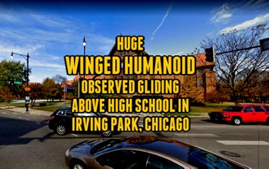 In June 2016, a witness observes a huge winged humanoid gliding over the Carl Schurz High School in the Irving Park neighborhood of north Chicago.