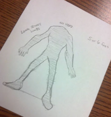 Description in detail: it was headless, skinny, shadowy humanoid figure made a loud scratching/clanking metal type noise and climbed a tree that doesn't offer much footing. Don't know what the hell it was. Sketch provided below." BT