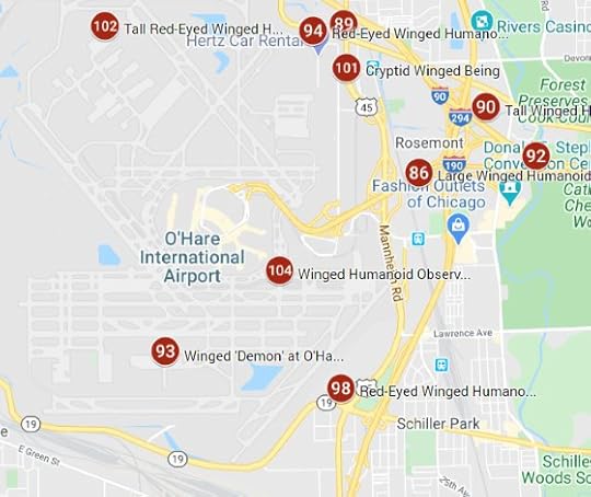 Chicago & Regional Winged Humanoid / Flying Entity Sightings & Encounters Interactive Map