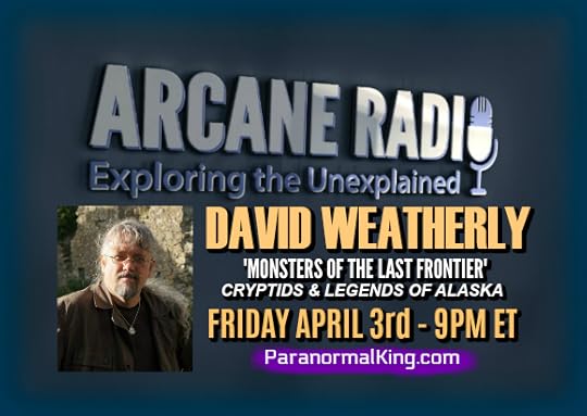Join me as I welcome author, investigator and explorer David Weatherly to Arcane Radio. David is a renaissance man of the strange and supernatural. He has traveled the world in pursuit of ghosts, cryptids, UFOs, magic and more. From the specters of dusty castles, to remote, haunted islands, from ancient sites, to modern mysteries, he has journeyed to the most unusual places on the globe seeking the unknown. David has investigated, and written about, a diverse range of topics including, Hauntings, Cryptozoology, Ufology, Ancient Mysteries, Shamanism, Magic and Psychic Phenomena. He has been a featured speaker at conferences around the world and has lectured for countless paranormal, UFO, and spiritual groups. He is a frequent guest on Coast to Coast AM with George Noory, Darkness Radio and other radio programs. David has also appeared on numerous television shows including Ancient Aliens, Mysteries at the National Parks and Beyond Belief. His latest book is 'Monsters of the Last Frontier: Cryptids & Legends of Alaska.' His website can be found at eerielights.com - This should be an interesting & informative show! Join us this Friday, April 3rd at 9PM ET / 6PM PT on ParanormalKing.com or the direct link at mixlr.com/paranormal-king - Meet us in the chat room...just click the banner or go to www.paranormal.olicentral.com