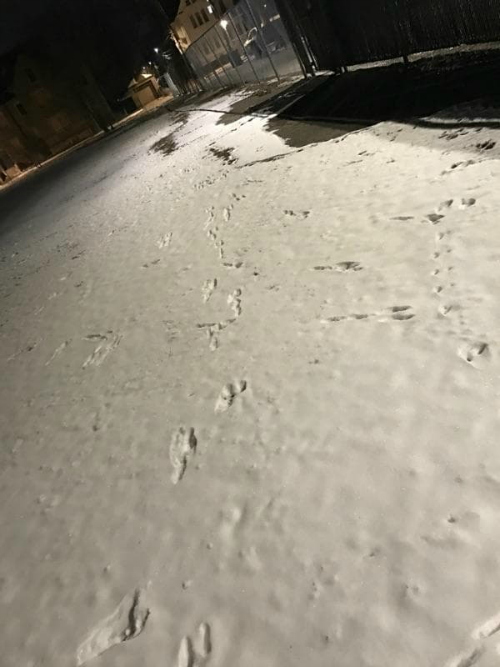 In recent days, there have been indications that something unknown was lurking in the woods. One evening TA stepped out onto his back deck as he was followed by this 3 Pitbull Terriers. Right away the dogs sensed alarm and all 3 stood silently still while watching the woods. Within seconds they tucked their tails between their legs and scampered back into the house. As TA stood surprised by his dogs' reaction, he heard a loud 'snap' that he said, 'sounded like a small tree was literally broke in half!'