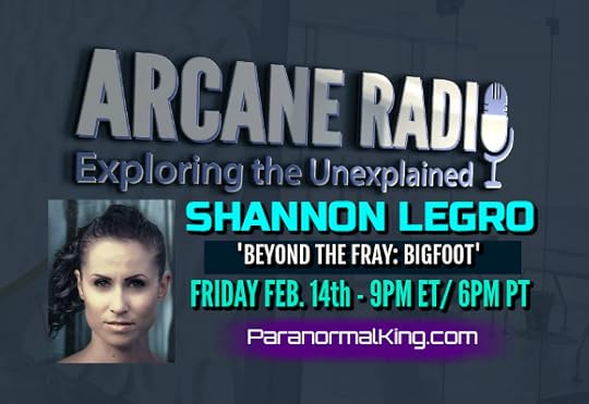 This week I welcome investigator, radio host and author Shannon Legro to Arcane Radio. Shannon has been examining the paranormal since she was a teen, having had her own personal experience which started her on this path. And for the past several years, a focus on the phenomena that is Sasquatch. She strives to bring a fresh perspective and an open mind to the most intriguing mysteries in our universe. You can hear Shannon on 'Into the Fray Radio.' She has also been a guest-host on 'Midnight in the Desert.' You can see her in Small Town Monsters production 'On the Trail of Bigfoot' and as a part of other STM film productions. Her recent book is titled 'Beyond the Fray: Bigfoot.' Shannon's website is at www.intothefrayradio.com - This will be an informative and entertaining show! Join us this Friday, January 14th at 9PM ET / 6PM PT on ParanormalKing.com or the direct link at mixlr.com/paranormal-king - Meet us in the chat room...just click the banner or go to www.paranormal.olicentral.com