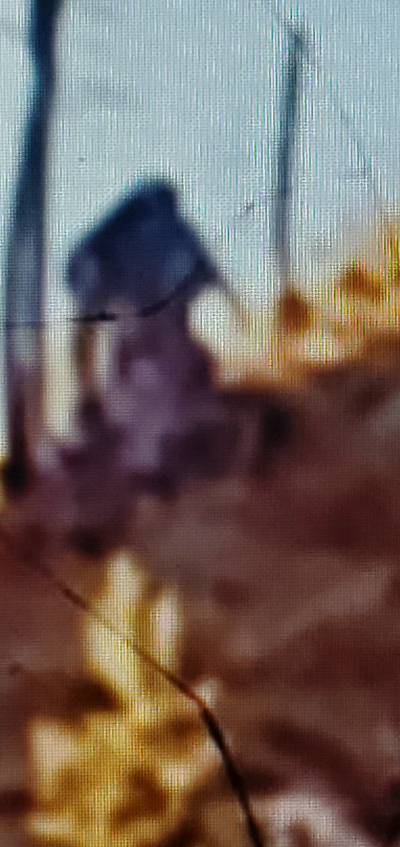 As they scanned the ridge and valley in front of them, they noticed movement along the edge. As they watched, CC thought that it may have been another hunter. But there was something unusual about the size and the way it was moving. He looked through his binoculars and was shocked by the size of the figure. He took out his cell camera (that had a cracked lense) and snapped off a photo before the creature moved out of sight.