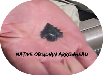 The next morning he decided to go swimming, and as he approached the huge rock he noticed that the marbles were gone and in their place was a small blue pastel rock (possibly Arizona Blue Agate). Gerald replaced the small rock with trinkets and beads. Once again, when he returned he found another 'gift.' This back and forth exchanged continued for several days. Gerald offered more trinkets as well as a large coffee can of fruit. Each exchange yielded several interesting stones & objects of different shapes and designs. These included a Black Obsidian arrowhead crafted by earlier native people, shaped Hematite & Serpentine and a sea-bean (drift seed).