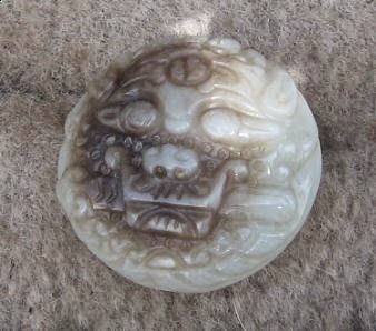 Then, finally, a remarkable artifact was presented to Gerald. The piece is a circular White & Black Agate medallion, carved with a distinctive 'eye' design on one side and an effigy of a deity on the other. It is similar, in design, to a Chinese lion or dragon...but it is not jade. JC contacted me about the piece in order to identify the markings. After some research, I determined that the piece may have been a talisman used by the Anasazi people. I had found depictions of original pieces and compared the markings. The Anasazi or Ancient Pueblo Peoples were an ancient Native American culture in what is now the southwestern United States. The word Anasazi or Anaasází is Navajo for "Ancient Ones" or "Ancient Enemy" and these people farmed the Four Corners area between 900 AD - 1300 AD.