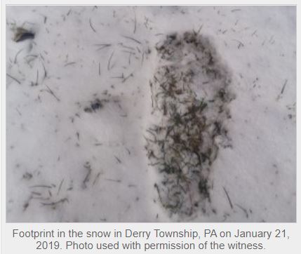 January 21, 2019- During the early morning hours a series of strange footprints were seen in the snow in Derry Township. These tracks were similar to others that have been found over the years around Derry Township near the Chestnut Ridge.