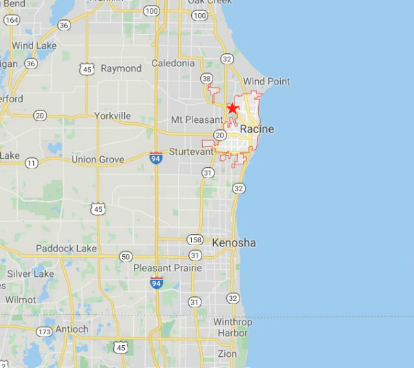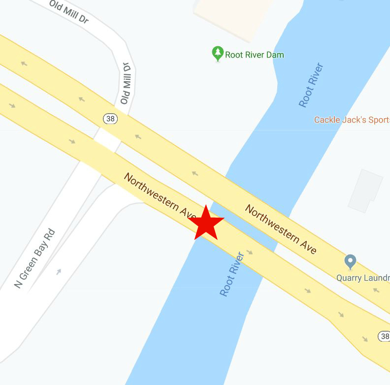 CM was driving home from work at 1:20 am during the last week of September 2019. He left Kenosha, WI and drove north on Rt 31 (S. Green Bay Rd) towards his home in Racine, WI. He got off at N. Green Bay Rd (Highway MM) and drove towards Rt 38 (Northwestern Ave). He soon notice a tall dark winged entity, which he referred to as a 'gargoyle', near the Root River overpass.
