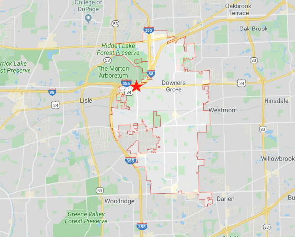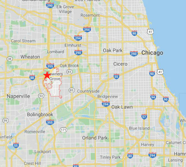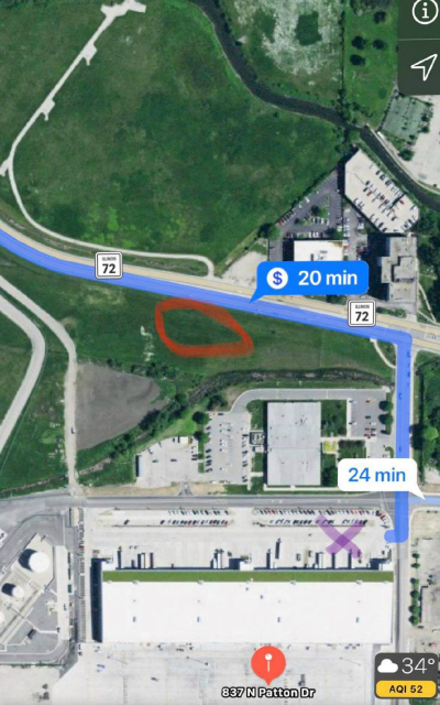 On the map provided by DR (below), he states: "This red circle is where I saw it. The purple X is where I work. I left around 10:16 pm, and had my at 10:20 pm while heading west on W. Higgins Rd down that blue line.":