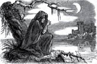 "Who sits upon the heath forlorn,With robe so free and tresses torn?Anon she pours a harrowing strain,And then she sits all mute again!Now peals the wild funeral cryAnd now... it sinks into a sigh."