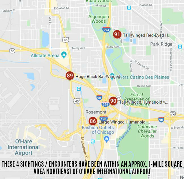 Chicago & Regional Winged Humanoid / Flying Entity Sightings & Encounters Interactive Map