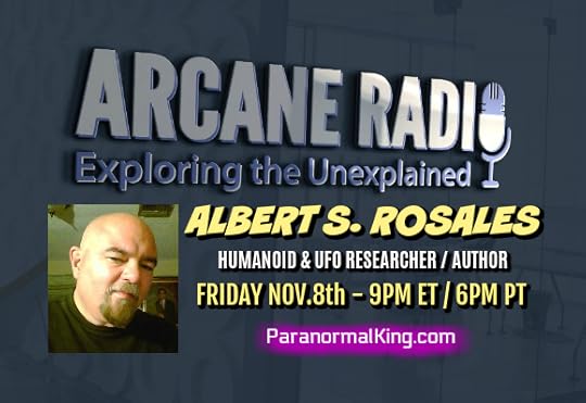 Join me as I welcome humanoid & UFO researcher / author Albert S. Rosales to Arcane Radio. Albert was born in Cuba and migrated to the US in 1966. He witnessed several unusual incidents as a young man while living in Cuba, which continued throughout his life in the US. Albert became interested in unusual phenomena and UFOs at a young age, but soon directed his focus to the crux of the phenomena...the humanoids and otherworldly entities. He began collecting data on encounters from worldwide sources in the late 80's. His current database has over 20,000 entries, which is updated and corrected daily. Albert has published 16 titles, including 'UFOs Over Florida: Humanoid and other Strange Encounters in the Sunshine State.' This should be a very informative and entertaining show! Join us this Friday, November 8th at 9PM ET / 6PM PT on ParanormalKing.com or the direct link at Mixlr - Paranormal King - Meet us in the chat room...just click the banner or go to www.paranormal.olicentral.com. You are invited to join the Phantoms & Monsters chat & discussion portal at Phantoms & Monsters discussion & chat server, which will be active during the show