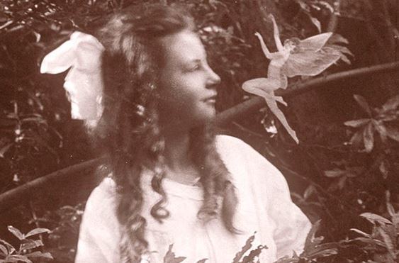 The “Cottingley Fairies” appeared in a series of five photographs taken by Elsie Wright (1901–1988) and Frances Griffiths (1907–1986), two young cousins who lived in Cottingley, near Bradford in England. The photograph above was the first in the series, depicting the then younger Frances at age 9 and snapped by the older cousin Elsie. The pictures came to the attention of the great spiritualist writer Sir Arthur Conan Doyle, who used them to illustrate an article on fairies he had been commissioned to write for the Christmas 1920 edition of Strand Magazine.