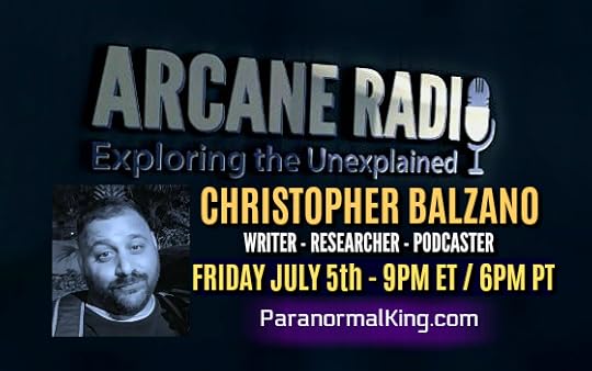 Join me as I welcome writer, researcher and podcaster Christopher Balzano to Arcane Radio. Christopher is the current host of the podcast 'Tripping on Legends' and has been documenting the unexplained since 1994. He is the author of several books about regional hauntings, especially in the Bridgewater Triangle of Massachusetts. Christopher has also captured stories of everyday people who have accidentally allowed spirits into their house. He has been mentioned in more than a dozen other books, often called in to offer insight into a specific case. Christopher has been involved with several media presentations, including Paranormal State, Ghost Adventures.and the Spooky Southcoast radio show. This should be an interesting show! Join us this Friday, July 5th at 9PM ET / 6PM PT on ParanormalKing.com or the direct link at Mixlr - Paranormal King - Meet us in the chat room...just click the banner or go to www.paranormal.olicentral.com