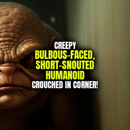 Creepy BULBOUS-FACED, SHORT-SNOUTED HUMANOID Crouched in Corner!